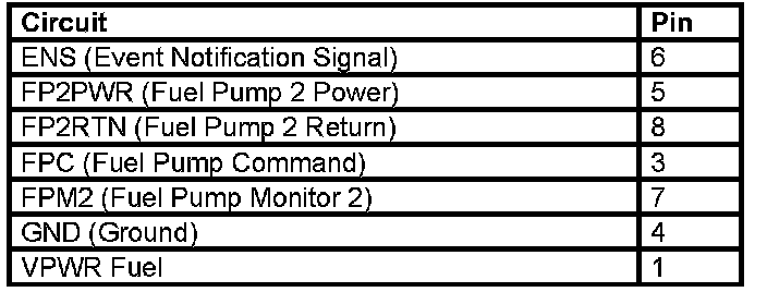 Fuel Pump Control Module Relay Connector - Refer to the Wiring Diagrams for schematic and connector information.