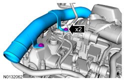 107. Tighten the 2 high pressure fuel tube bracket bolts to 10 Nm (89 lb-in).