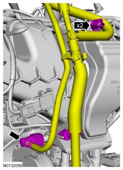 138. Connect the 2 turbocharger control vacuum hoses and 2 electrical connectors.
