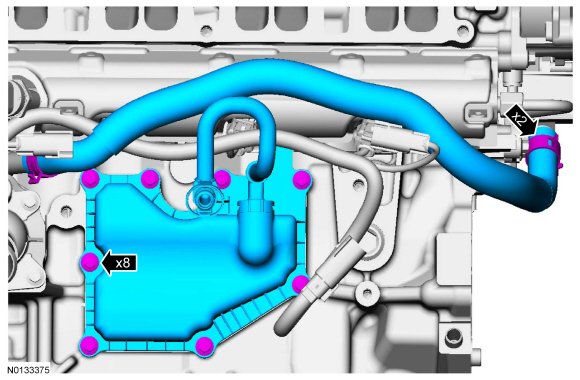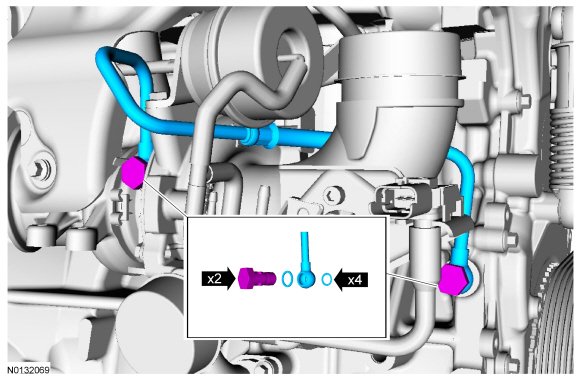 134. NOTE: Do not reuse the turbocharger oil return tube/gaskets, new parts must be installed.
