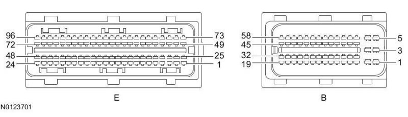 Powertrain Control Module (PCM) Connector - For PCM connector views or reference values, refer to Reference Values.