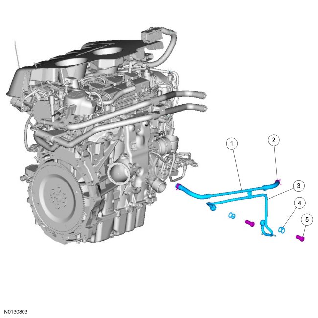 6. NOTE: Install a new cylinder block oil to engine turbocharger pipe and new gaskets.