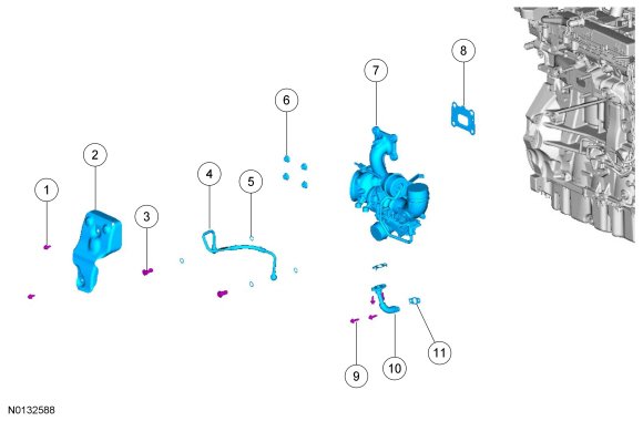 NOTICE: Do not disassemble the turbocharger. Doing so may cause turbocharger or engine damage to occur.