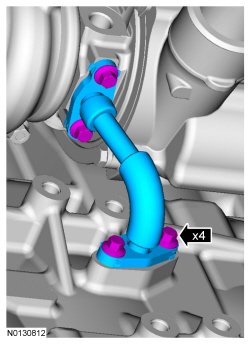 12. Remove the 4 bolts and the turbocharger oil drain tube.
