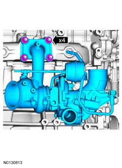 13. Remove the 4 nuts and the turbocharger.