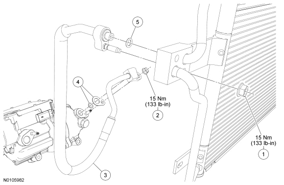 3. Remove the condenser inlet fitting nut and disconnect the fitting.