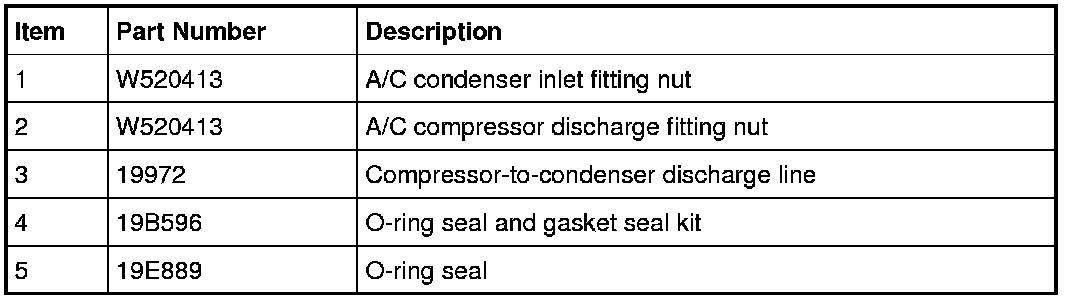 5. Remove the A/C compressor discharge fitting nut and disconnect the fitting.