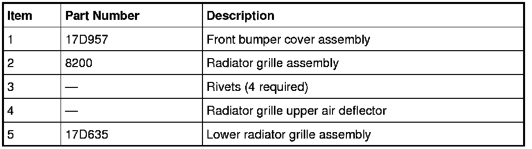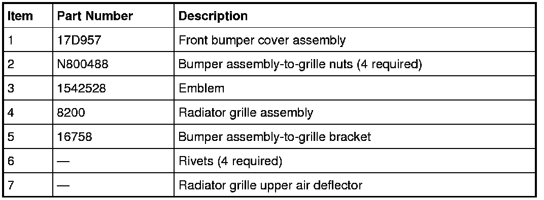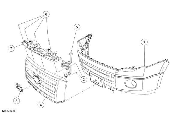 2. Remove the 4 bumper assembly-to-grille bracket retainer nuts and the bumper assembly-to-grille bracket.