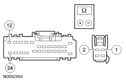 - Measure the resistance between DSM (Driver Seat Module) C341C, harness side and adjustable pedal motor C2159, harness side as indicated in the following chart: