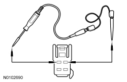 NOTICE: The following step uses a test light to simulate normal circuit loads. Use only the test light recommended in the Special Tools table at the beginning. To avoid connector terminal damage, use the Flex Probe Kit for the test light probe connection to the vehicle. Do not use the test light probe directly on any connector.