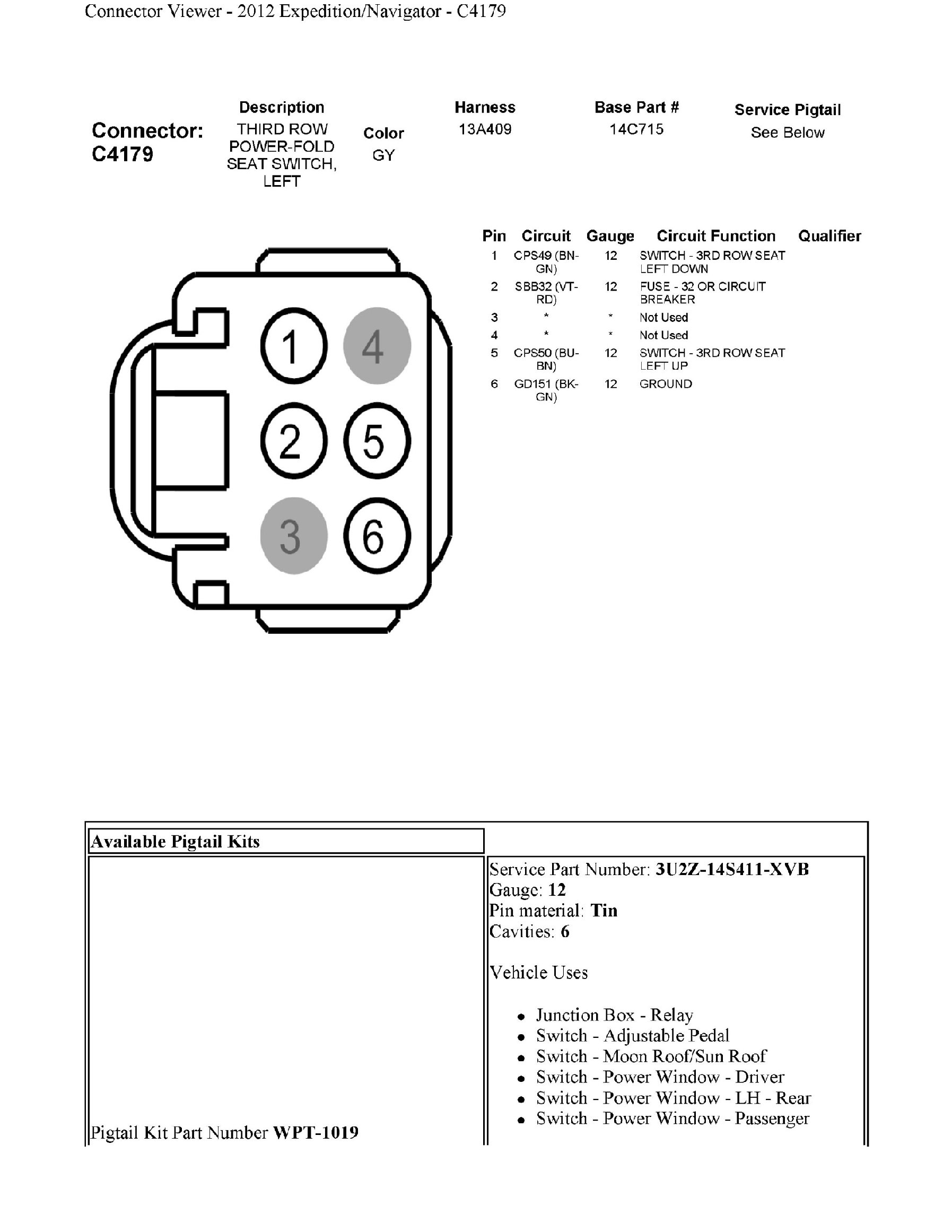 C4179 Third Row Power-Fold Seat Switch, Left