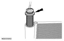 NOTE: Installation of a new receiver/drier desiccant cartridge is not required when repairing the A/C system, except when there is physical evidence of contamination from a failed A/C compressor or damage to the receiver/drier desiccant cartridge. Damage to the receiver/drier desiccant cartridge includes physical damage to the receiver/drier desiccant cartridge or moisture contamination. Moisture contamination results only from a complete loss of refrigerant and equalization of the refrigerant system pressure with atmospheric pressure for a period longer than one hour. If even a slight amount of positive refrigerant pressure is present in the system before repairs are carried out, the receiver/drier desiccant cartridge should not be replaced.