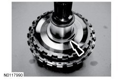 19. Install the T11 bearing, on the planetary ring gear and output shaft assembly.