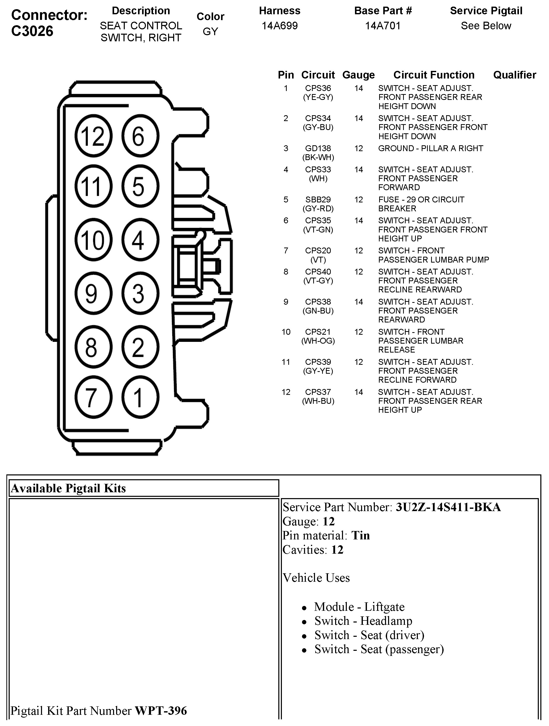 C3026 Seat Control Switch, Right