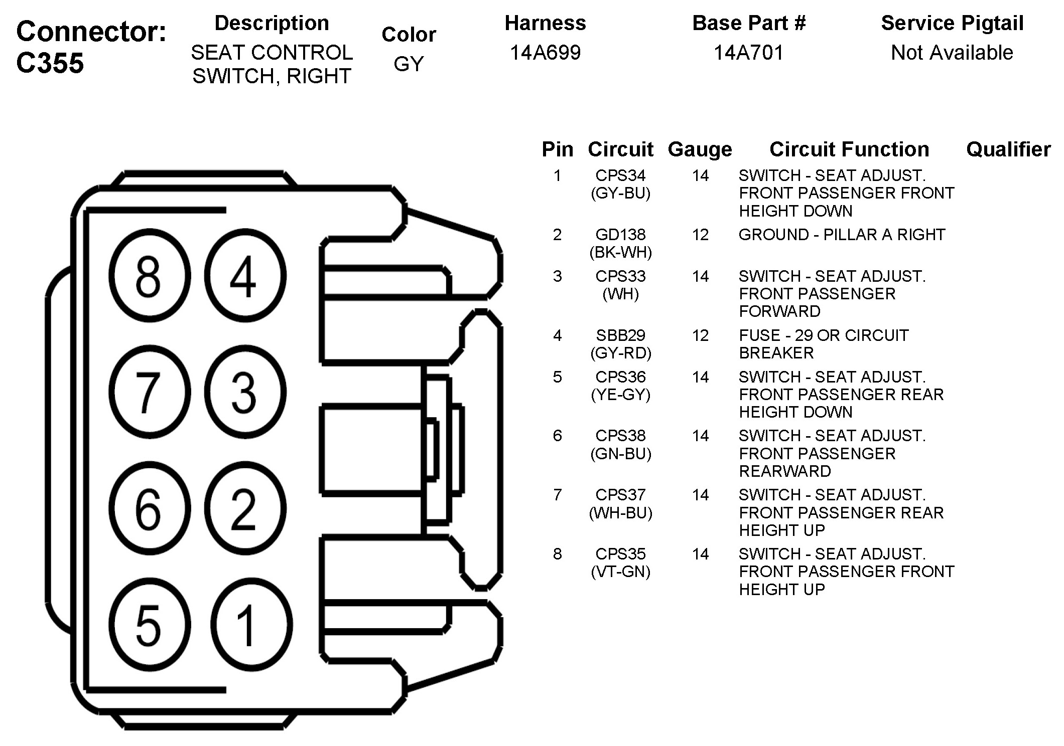 C355 Seat Control Switch, Right