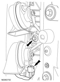 10. Disconnect the electrical connector and remove the bolt and the horn assembly.