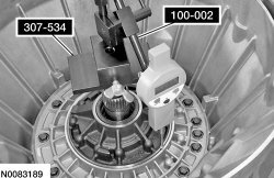 58. Install the Transmission End Play Gauge on the input shaft to measure the end play.