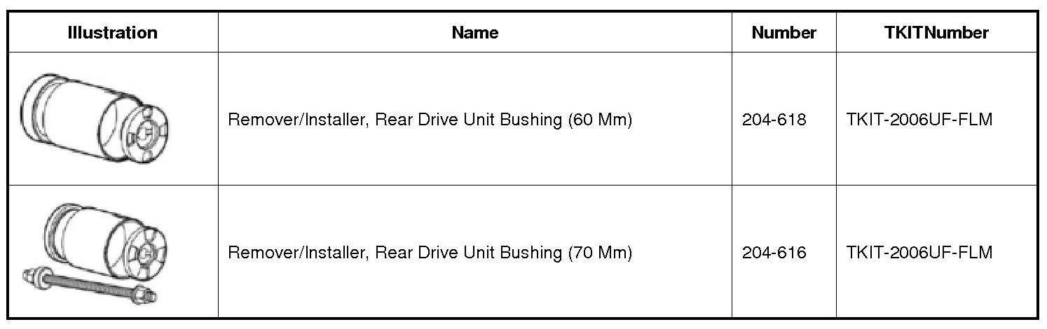 NOTE: When installing the RDU (Rear Drive Unit) bushing, RDU (Rear Drive Unit)204-616 /2 will fall away as the RDU (Rear Drive Unit) bushing is installed into the subframe. The RDU (Rear Drive Unit)204-616 does not control the depth of the bushing. The RDU (Rear Drive Unit) bushing is fully seated when the RDU (Rear Drive Unit)204-616 /3 and RDU (Rear Drive Unit)204-616 /1 fall away from the subframe, do not continue to tighten the RDU (Rear Drive Unit)204-616.