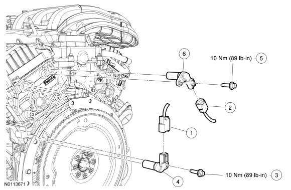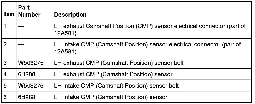 NOTE: It is necessary to remove the upper intake manifold to access the RH exhaust or intake Camshaft Position (CMP) sensor. For additional information, refer to Engine.