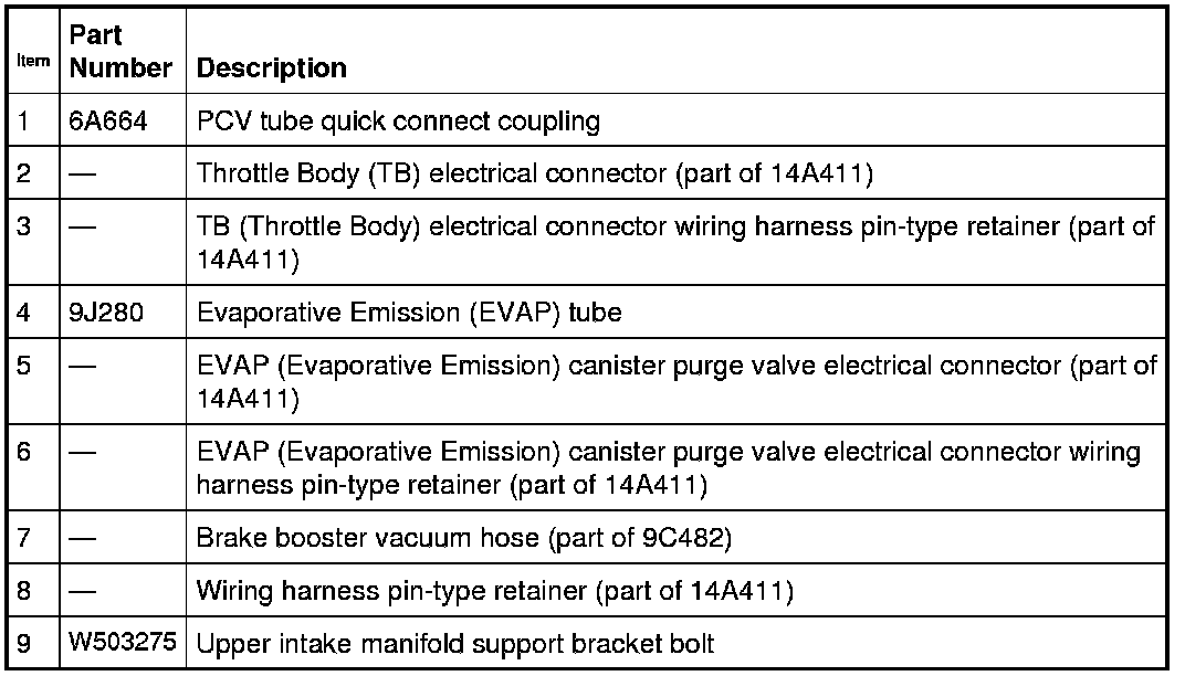 1. NOTICE: If the engine is repaired or replaced because of upper engine failure, typically including valve or piston damage, check the intake manifold for metal debris. If metal debris is found, install a new intake manifold. Failure to follow these instructions can result in engine damage.
