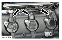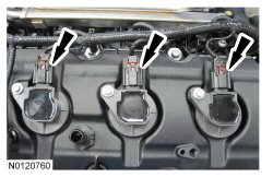 159. Connect the 3 LH ignition coil-on-plug electrical connectors.