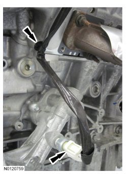 - Attach the EOP (Engine Oil Pressure) switch wiring harness retainer to the cylinder head.