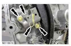 22. Install the 2 new RH VCT (Variable Camshaft Timing) bolts and tighten in 4 stages.