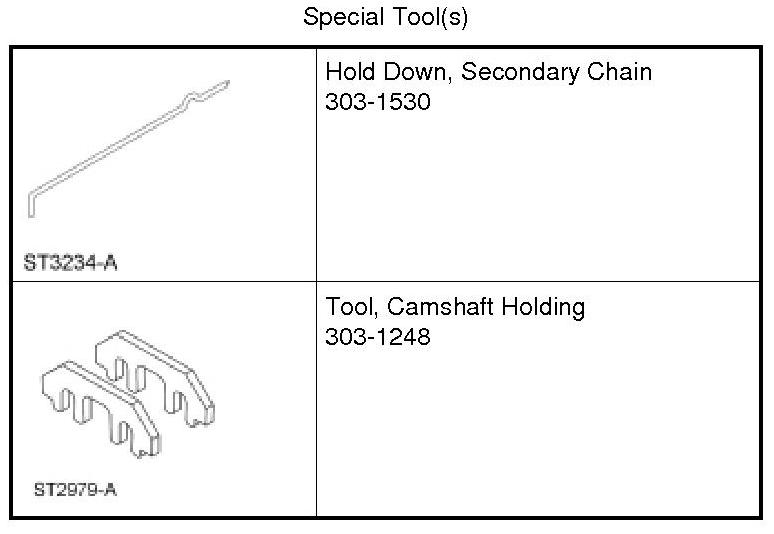 Compress the RH secondary timing chain tensioner and remove the Secondary Chain Hold Down.