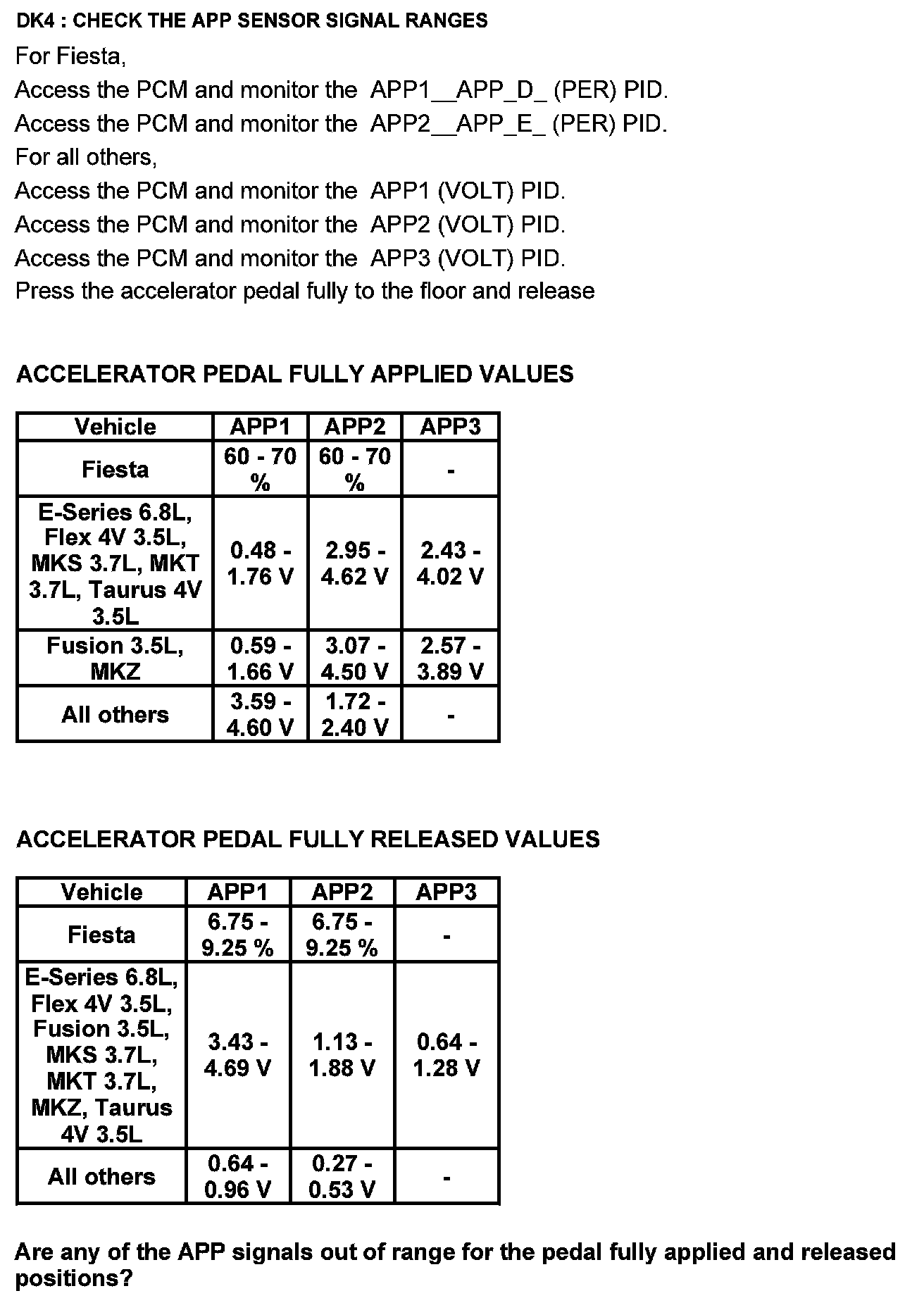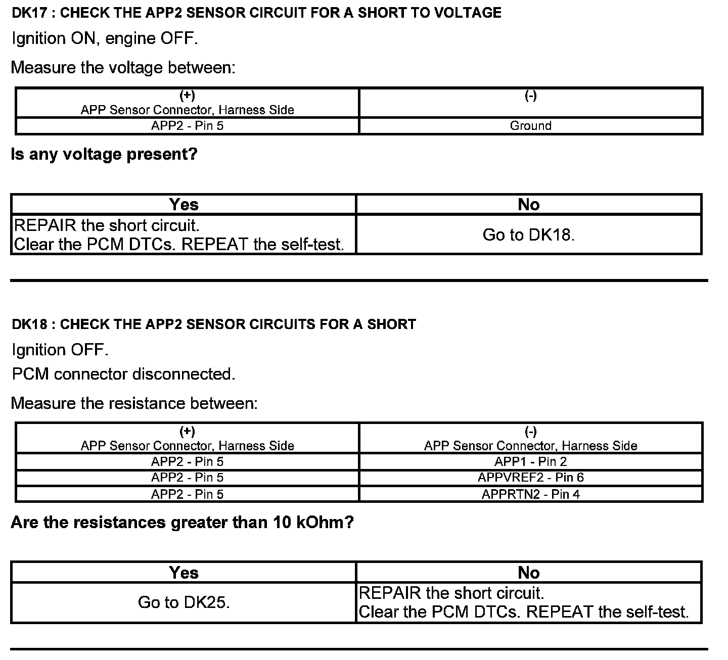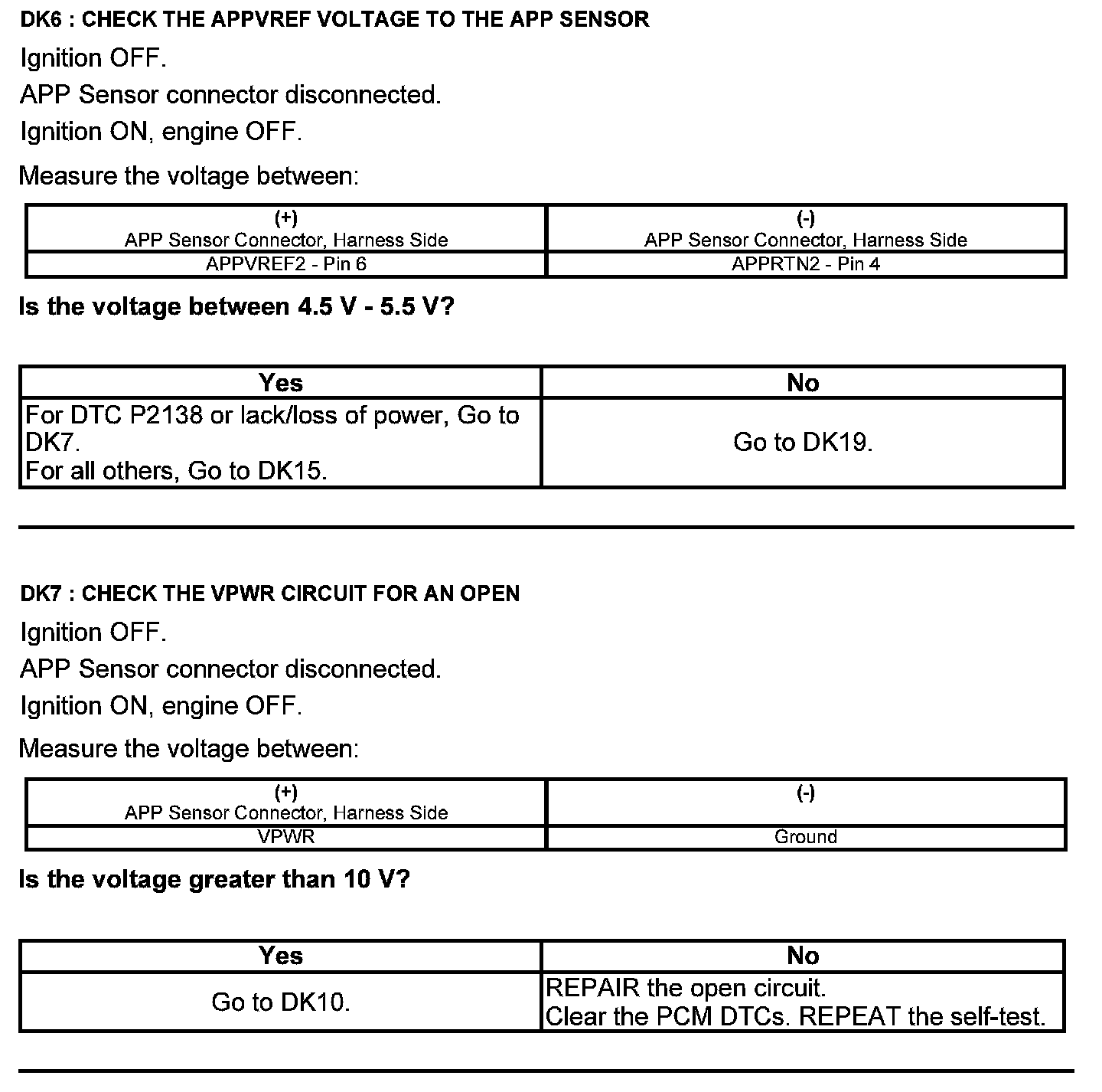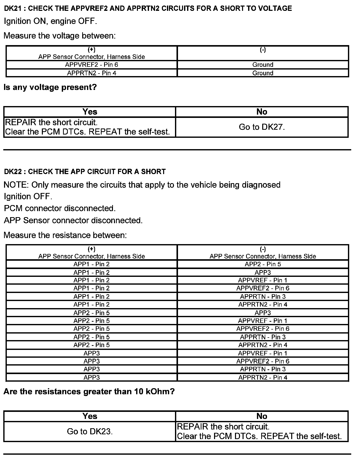 Test DK: Accelerator Pedal Position (APP) Sensor