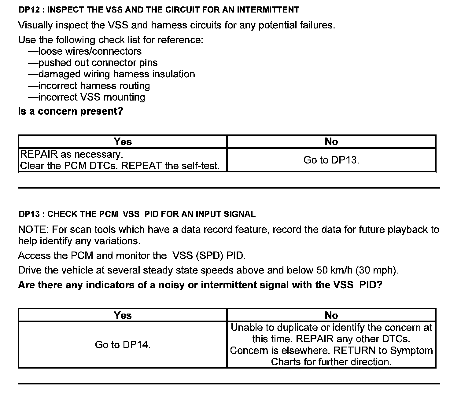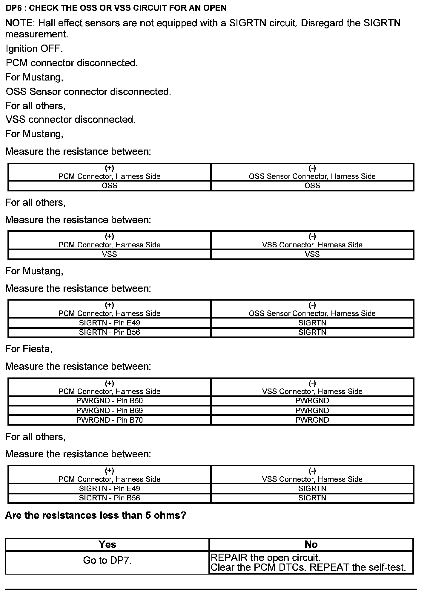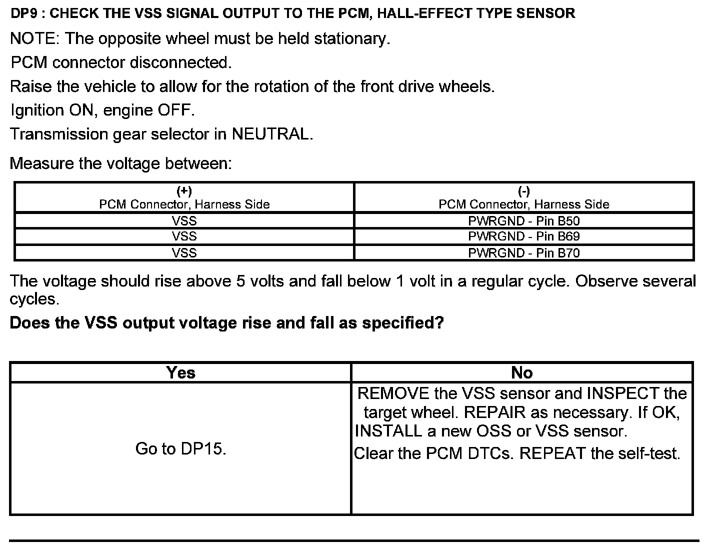 Test DP: Output Shaft Speed (OSS) Sensor/Vehicle Speed Sensor ( VSS)