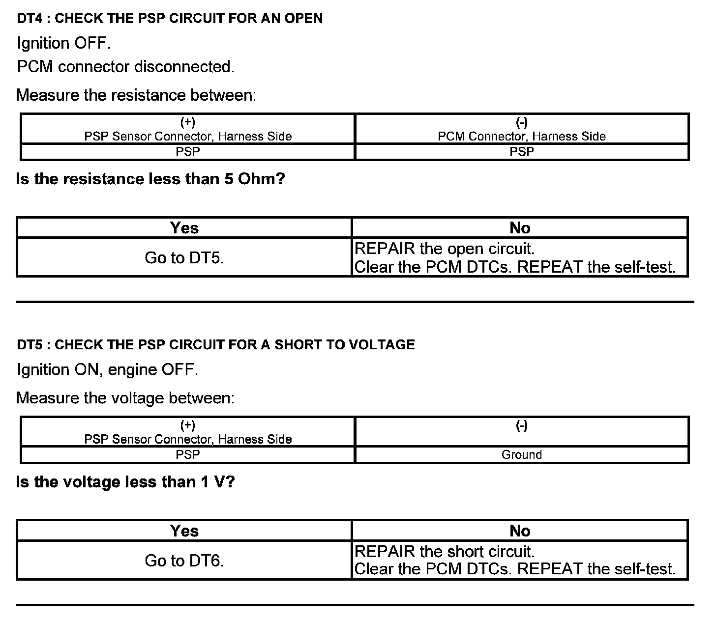 Test DT: Power Steering Pressure (PSP) Sensor