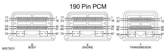 Powertrain Control Module (PCM) Connector - For PCM connector views or reference values, refer to Reference Values.