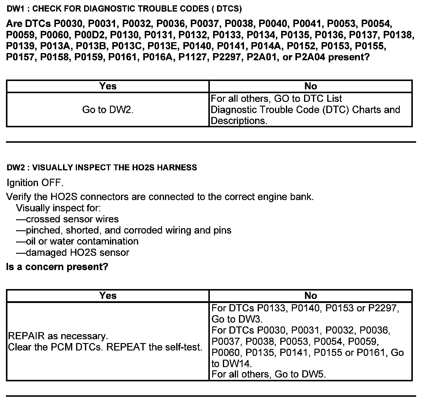 Test DW: Heated Oxygen Sensor (HO2S)
