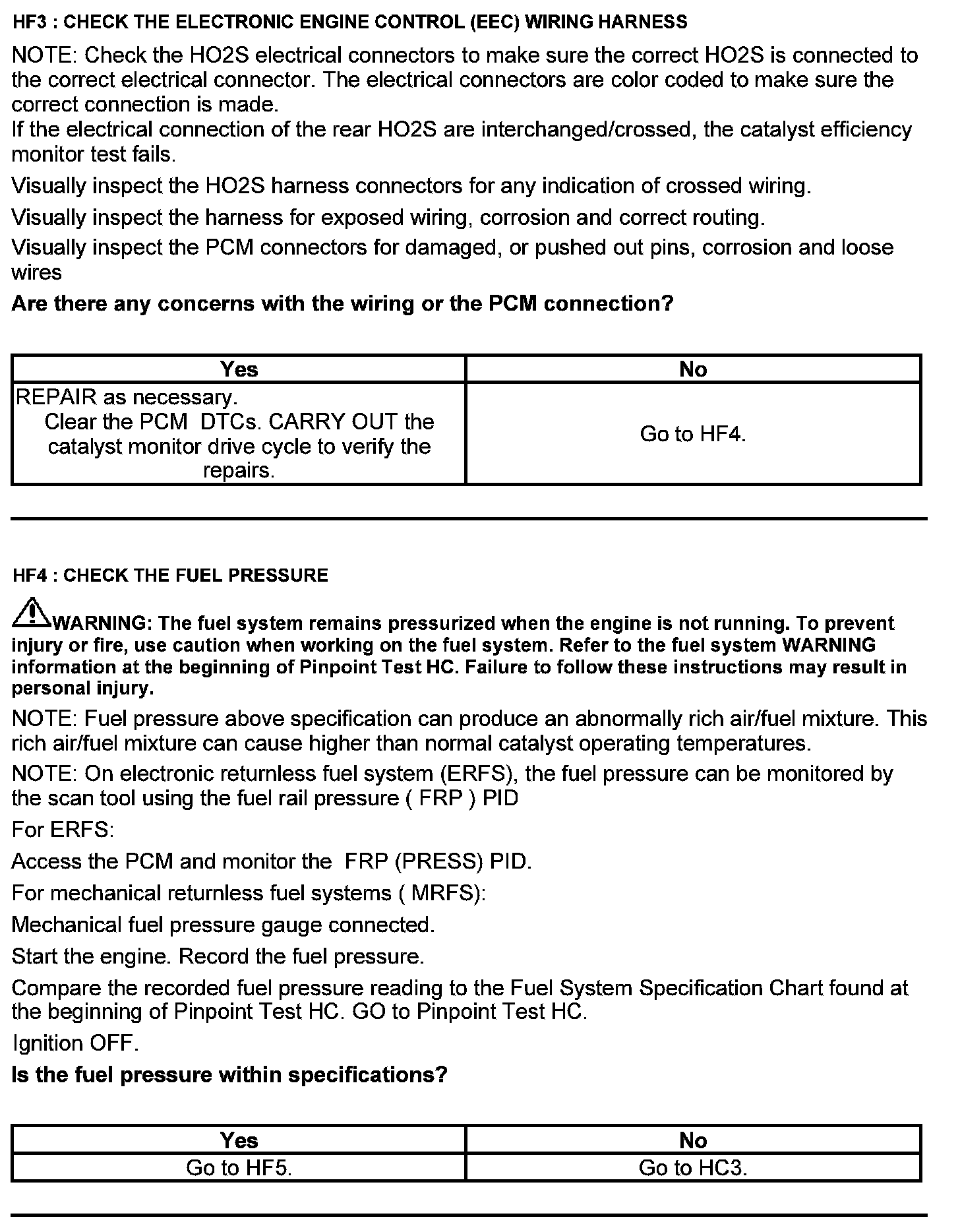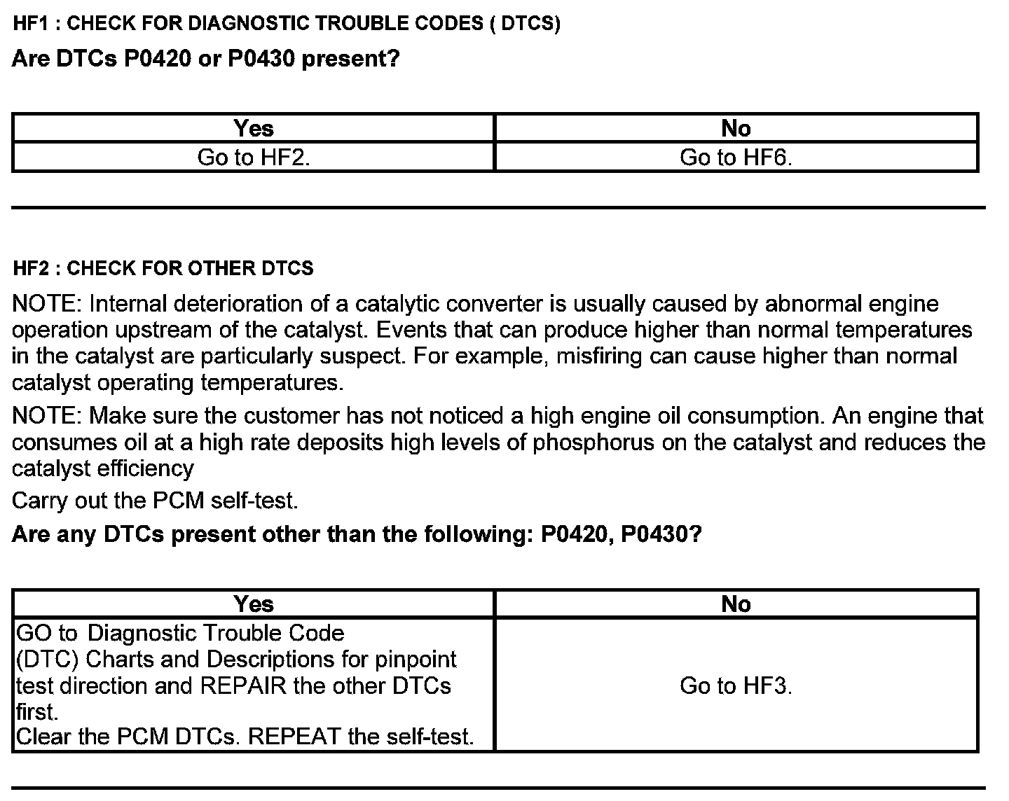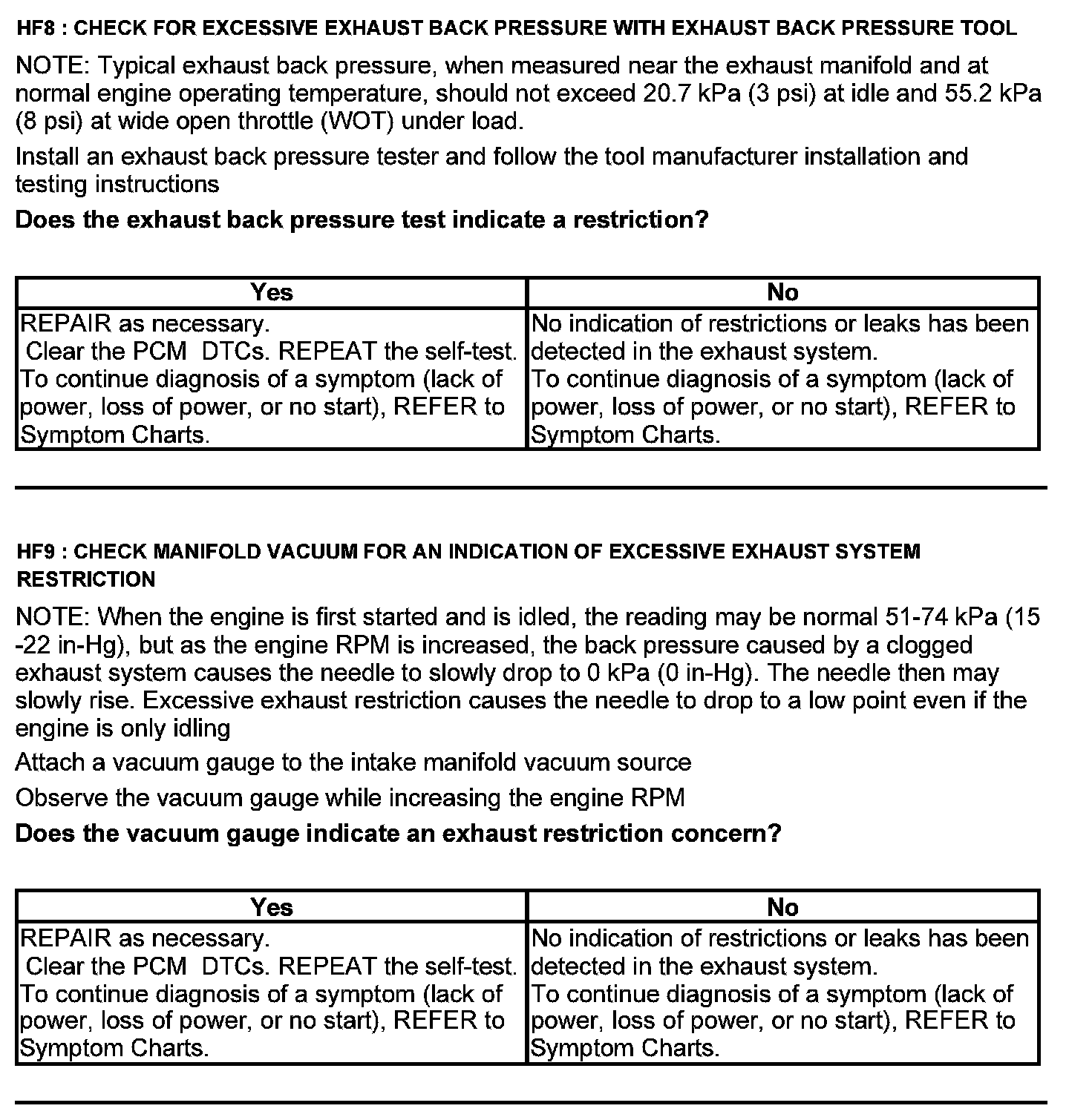 Test HF: Catalyst Efficiency Monitor and Exhaust Systems