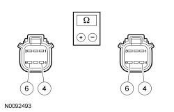 - Measure the resistance between LH PRB (Power Running Board) motor C3185, harness side and RH PRB (Power Running Board) motor C3186, harness side using the following chart:
