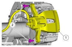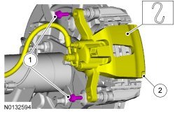 3. NOTICE: Do not allow the caliper to hang from the brake hose or damage to the hose can occur.