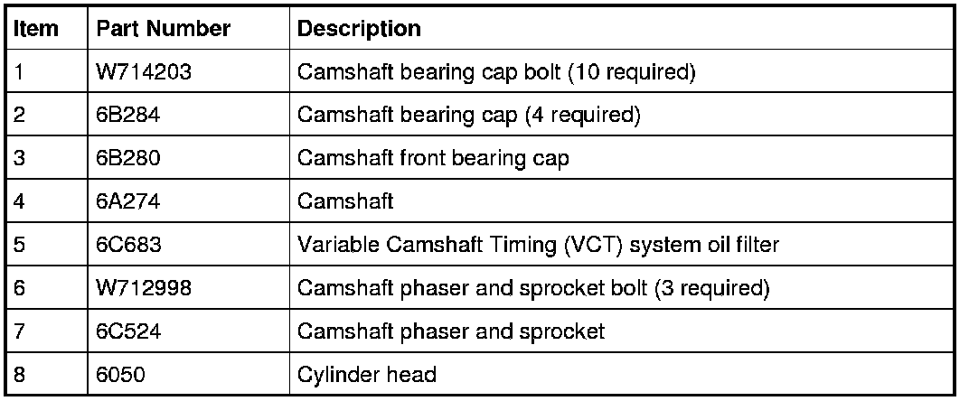 Camshaft Phaser and Sprocket, VCT (Variable Camshaft Timing) System Oil Filter, Camshaft Bearing Caps and Camshaft