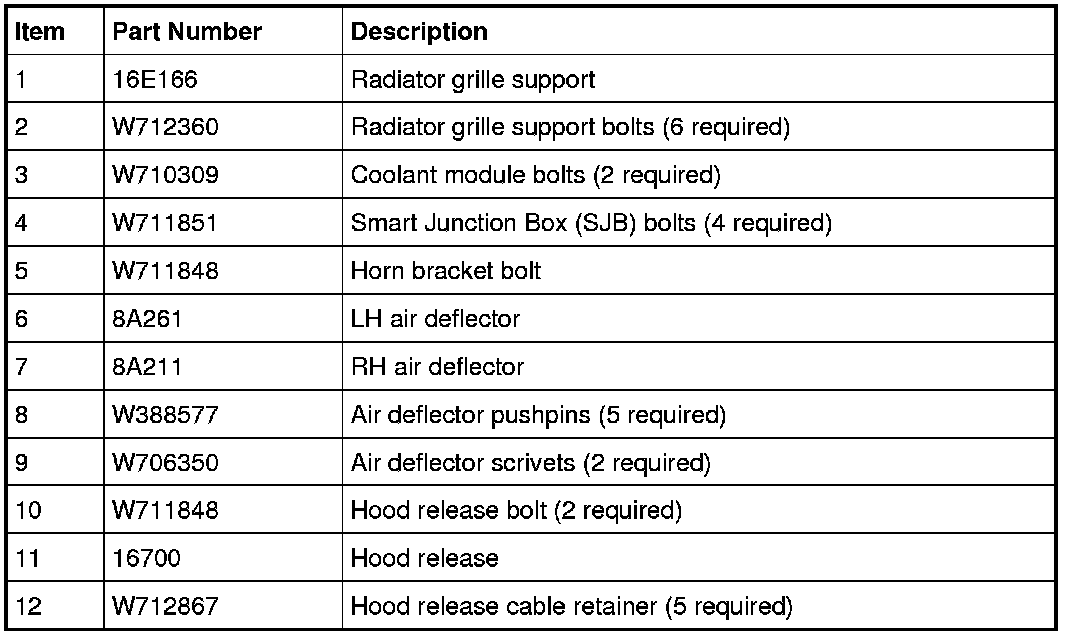12. Remove the 6 radiator grille support bolts (3 each side).