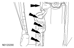 5. Remove the fender splash shield. For additional information, refer to Fender Splash Shield .