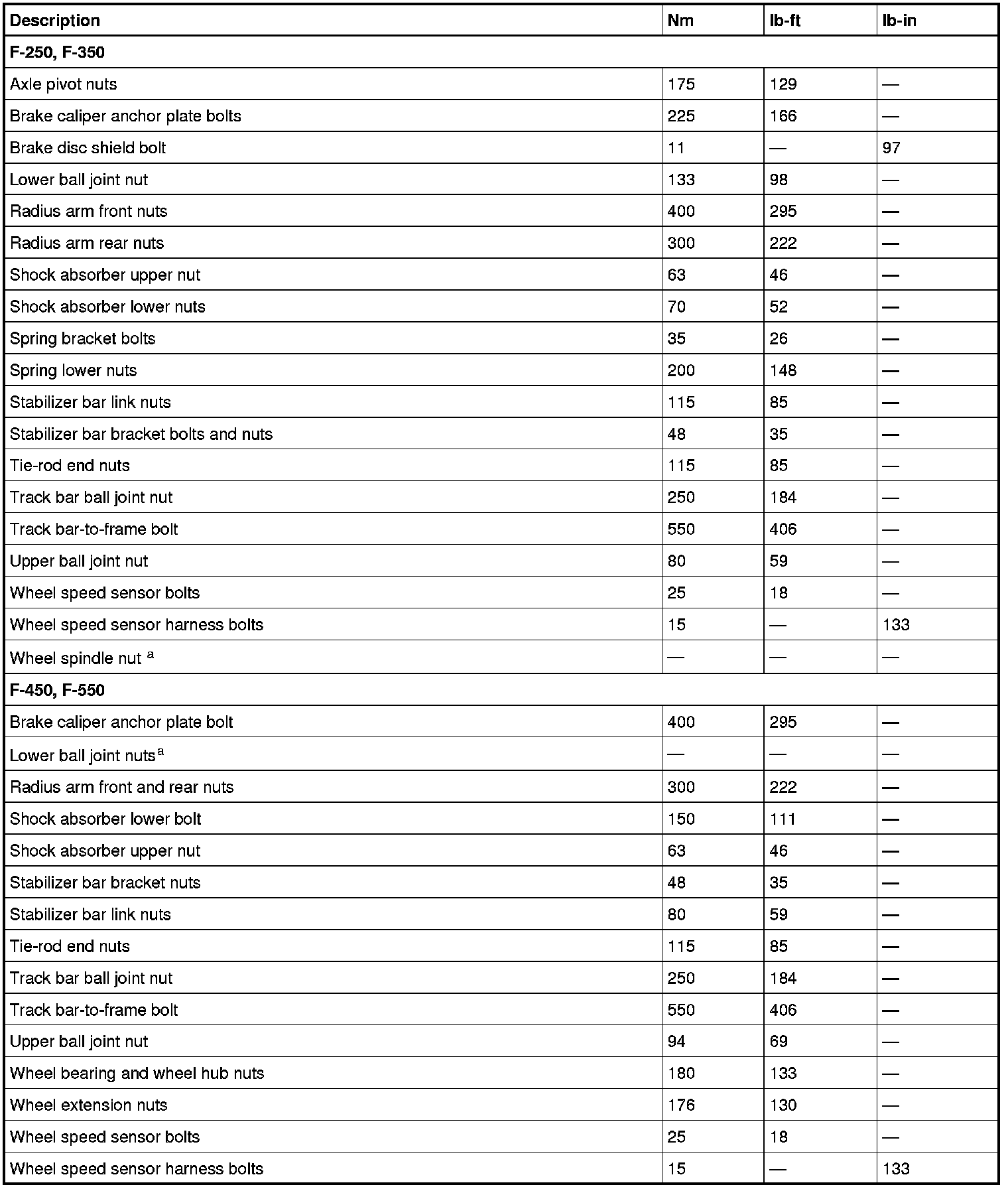 Torque Specifications