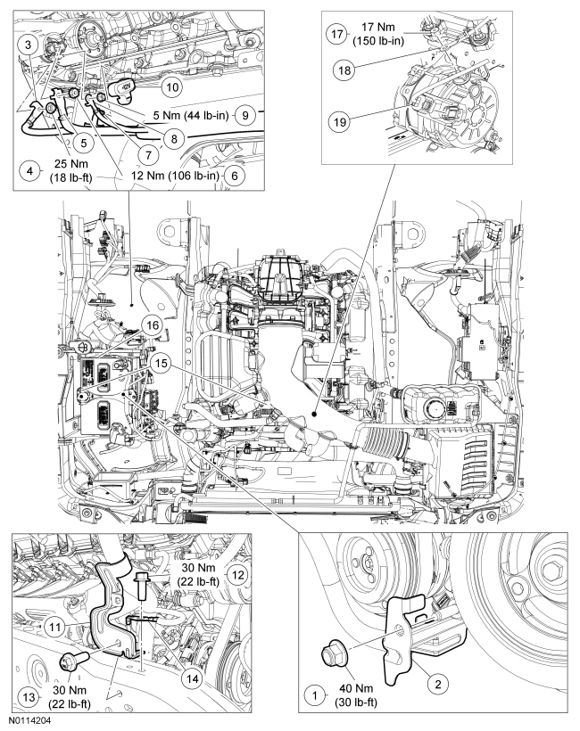 12. NOTE: It may be necessary to position the RH splash shield aside to access the battery ground cable bolt.