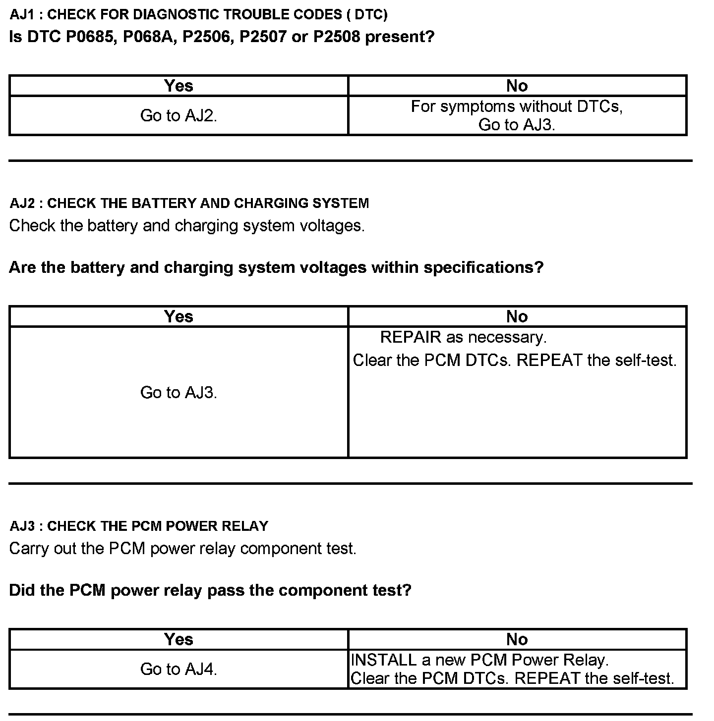 Test AJ: Powertrain Control Module (PCM) Power Relay