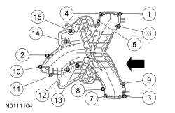 Install the upper intake manifold using new gaskets. Tighten the 15 bolts in the sequence shown.