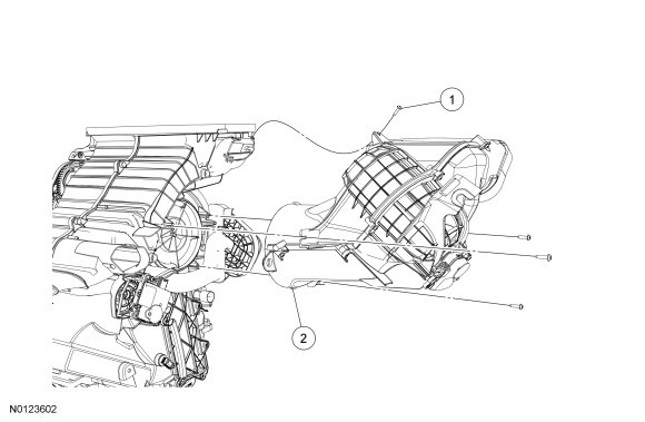 1. Remove the heater core and evaporator core housing. For additional information, refer to Heater Core And Evaporator Core HousingService and Repair.