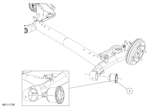 1. Using the special tool, install the trailing arm bushing.