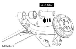 6. Using the special tools, remove the trailing arm bushing.