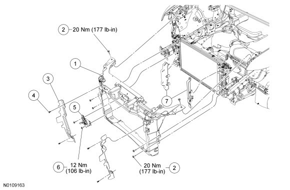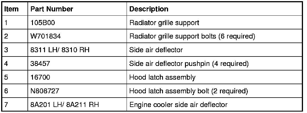14. NOTICE: Inspect and transfer all of the radiator grille support insulators. Replace as necessary.