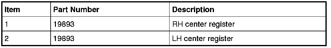 NOTE: The RH and LH center registers share the same base service part number but are not interchangeable. When obtaining service parts, be sure the correct register is ordered for the correct side.