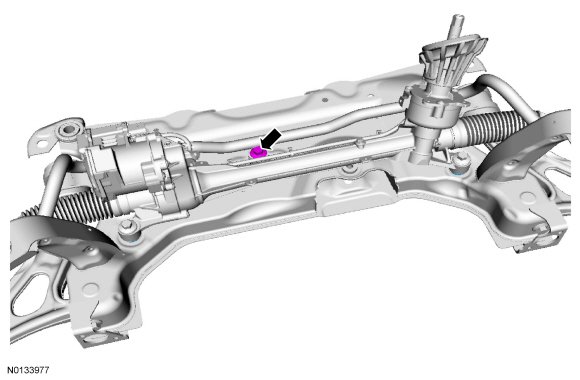2. Position the steering gear on the subframe and loosely install the 3 new steering gear bolts.
