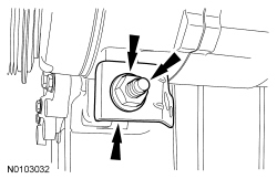 - Apply a 5.5 mm (0.21 in) bead of Motorcraft(R) High Performance Engine RTV Silicone to the 2 crankshaft seal retainer plate-to-cylinder block joint areas on the sealing surface of the oil pan.
